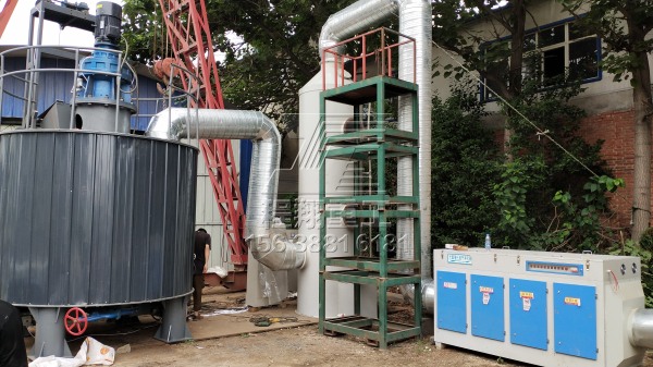 有機肥光氧除臭設(shè)備正在對發(fā)酵罐氣體除臭