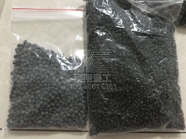 2、產(chǎn)量較小、含水量較低時(成本較高),使用新型三合一造粒機,不再需要烘干和冷卻,成球率相對較高,可以達到90%以上,硬度較好不易散塊。