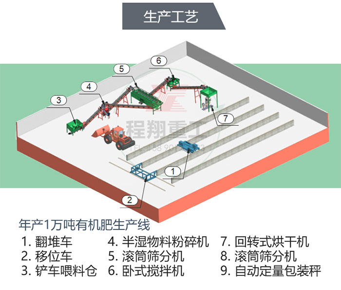 查看 > 13 2020/10本次發(fā)貨的設備是程翔重工是為江西某客戶定制的,簡單的年產(chǎn)1萬噸雞糞有機肥生產(chǎn)線,主要設備有:鏈式粉碎機、滾筒篩分機、濕法攪齒造粒機、鏟車喂料倉以及自動包裝秤。改雞糞生產(chǎn)線的工作流程為:發(fā)酵——粉碎——攪拌——造粒——篩分——包裝運輸1.發(fā)酵是第一步,畜禽糞便含有大量病蟲卵,需要進