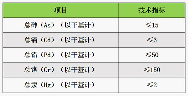 生物有機肥產(chǎn)品中5種重金屬限量技術要求。單位:mg/kg
