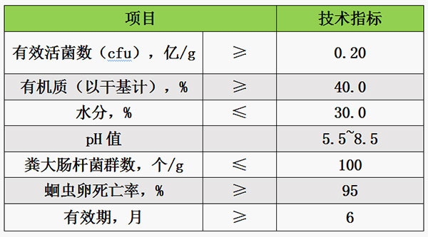 生物有機肥產(chǎn)品的各項技術指標應符合圖1的要求,產(chǎn)品劑型包括粉劑和顆粒兩種。