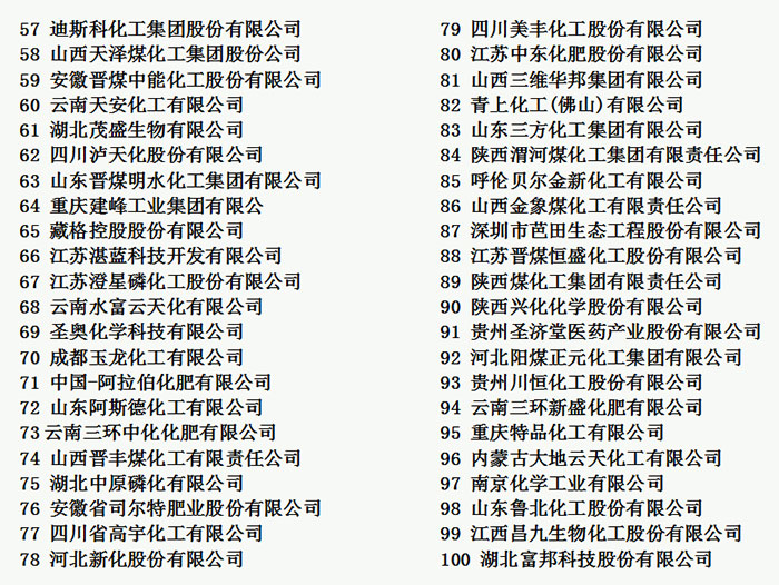 2018年化肥生產(chǎn)百強(qiáng)企業(yè)名單